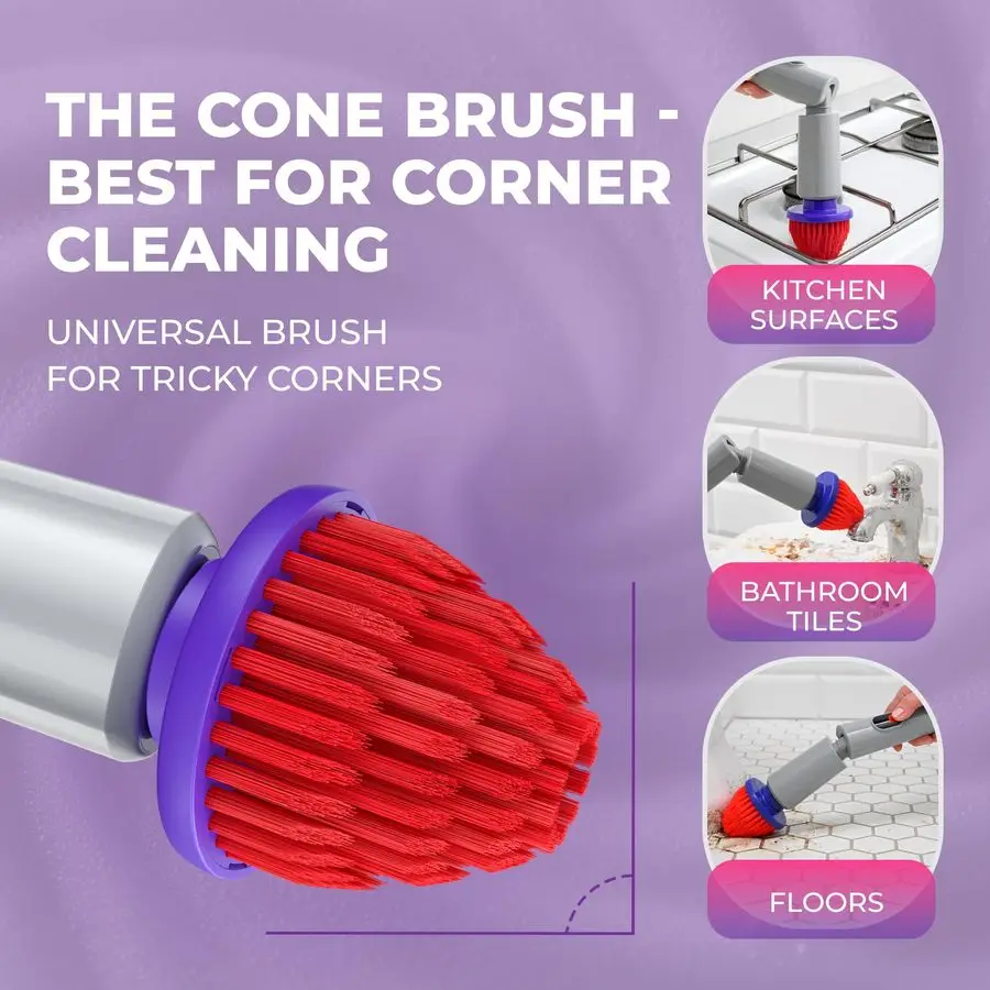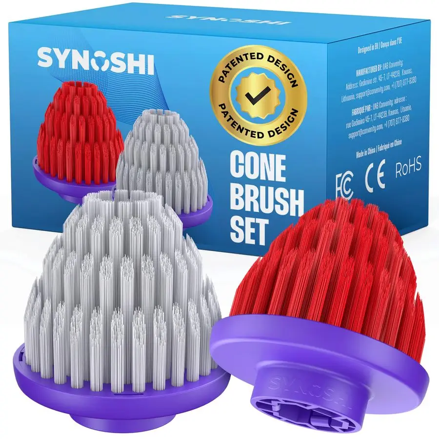 No Corner Is Too Difficult The Synoshi PRO Cone Brush Heads Set 2 Units for Electric Spin Scrubber is specially designed to clean where flat brushes can39t. The tapered shape reaches deep corners, tight gaps, window tracks, and around appliances with ease.