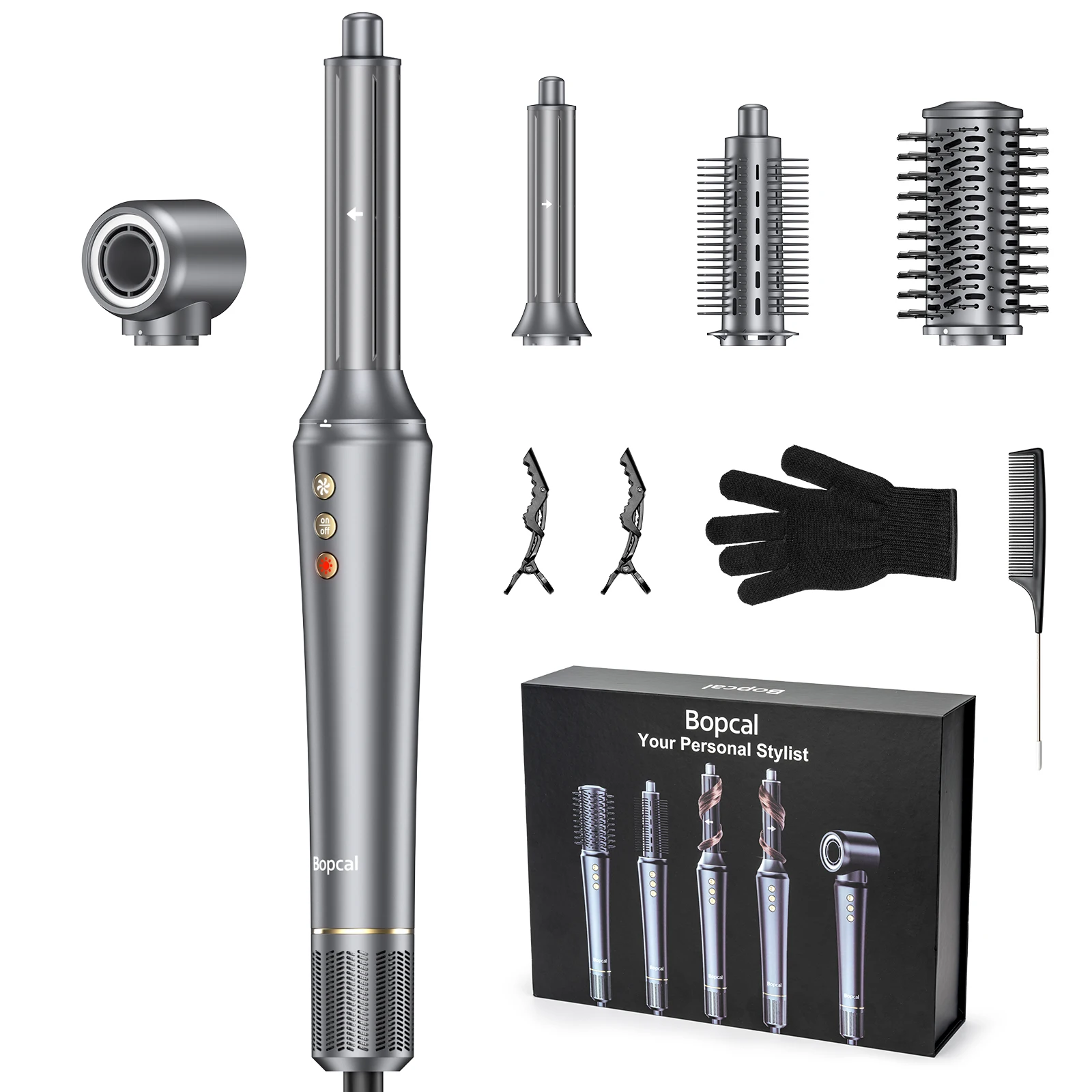 Bopcal 5 In 1 Hair Dryer Hot Air Comb Electric Hair Curling Iron 1200W High Speed Blower Multifunctional Styling Tools Hairdryer
