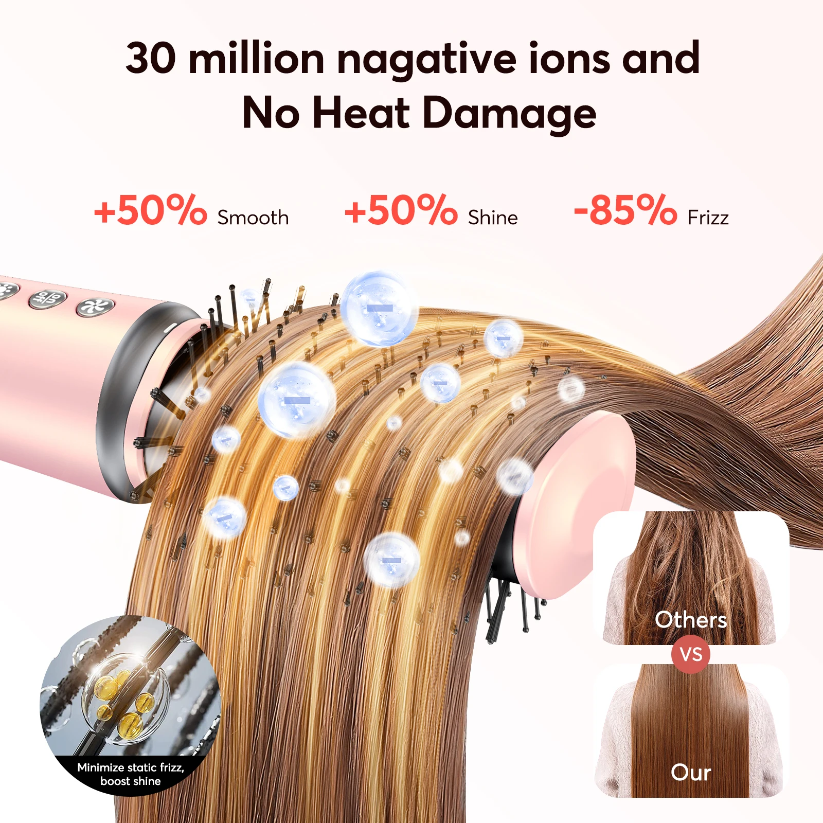 【Ionic Care】Hot Air Styler adopts ceramic coating technology, and the built-in device releases 320 Millionen of negative ion airflows, which can effectively smooth static frizz and increase luster. The airflow with negative ions acts on the hair, making it volumizing and smoother.