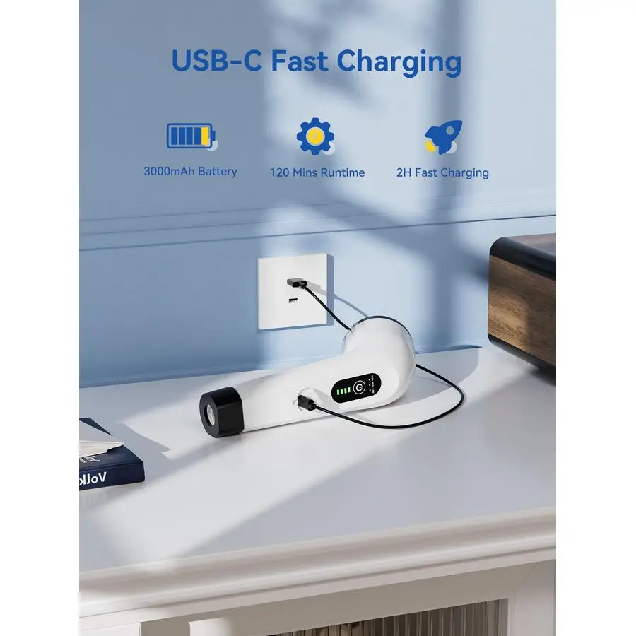 LongLasting Durability Clean for 120 Min Nonstop This cordless shower brush is equipped with 3000 mAh battery, lasts 2X longer than competitors 60 min. Clean your entire bathroom on a single charge