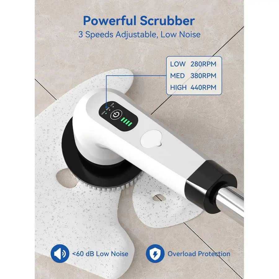 3Speed Scrubbing 440 RPM Max Effortless Deep Cleaning The power scrubber features 440 RPM highspeed motor blasts through soap scum, grease, grime, stubborn hard water stains and dirt with ease Switch between 3 speeds 280 380 440 RPM for delicate surfaces or tough stainsno more manual scrubbing